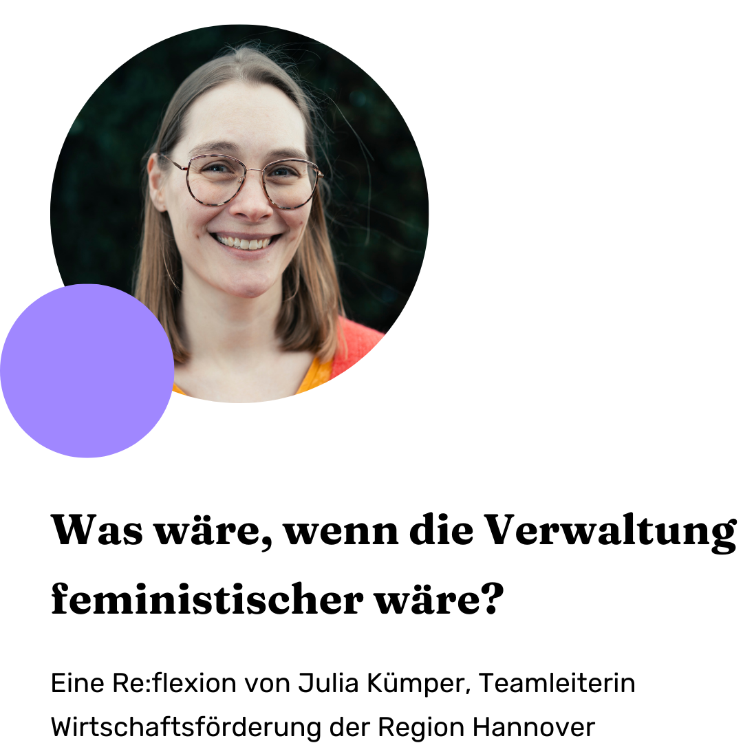 Was bleibt? Der feministische Anspruch, eine Staatsreform mit Beteiligung aller Menschen zu gestalten. Die Komplexität dieses Unterfangens auszuhalten und Räume zu schaffen, in denen alle Perspektiven gehört werden und in einen Aushandlungsprozess für den Staat für morgen gehen können. Nicht allein aus der Verwaltung heraus zu entscheiden, was wichtig für Menschen ist. Sondern die Verwaltung als Mediatorin zwischen Politik und Gesellschaft zu verstehen – zum Wohle einer besseren Zukunft für alle.